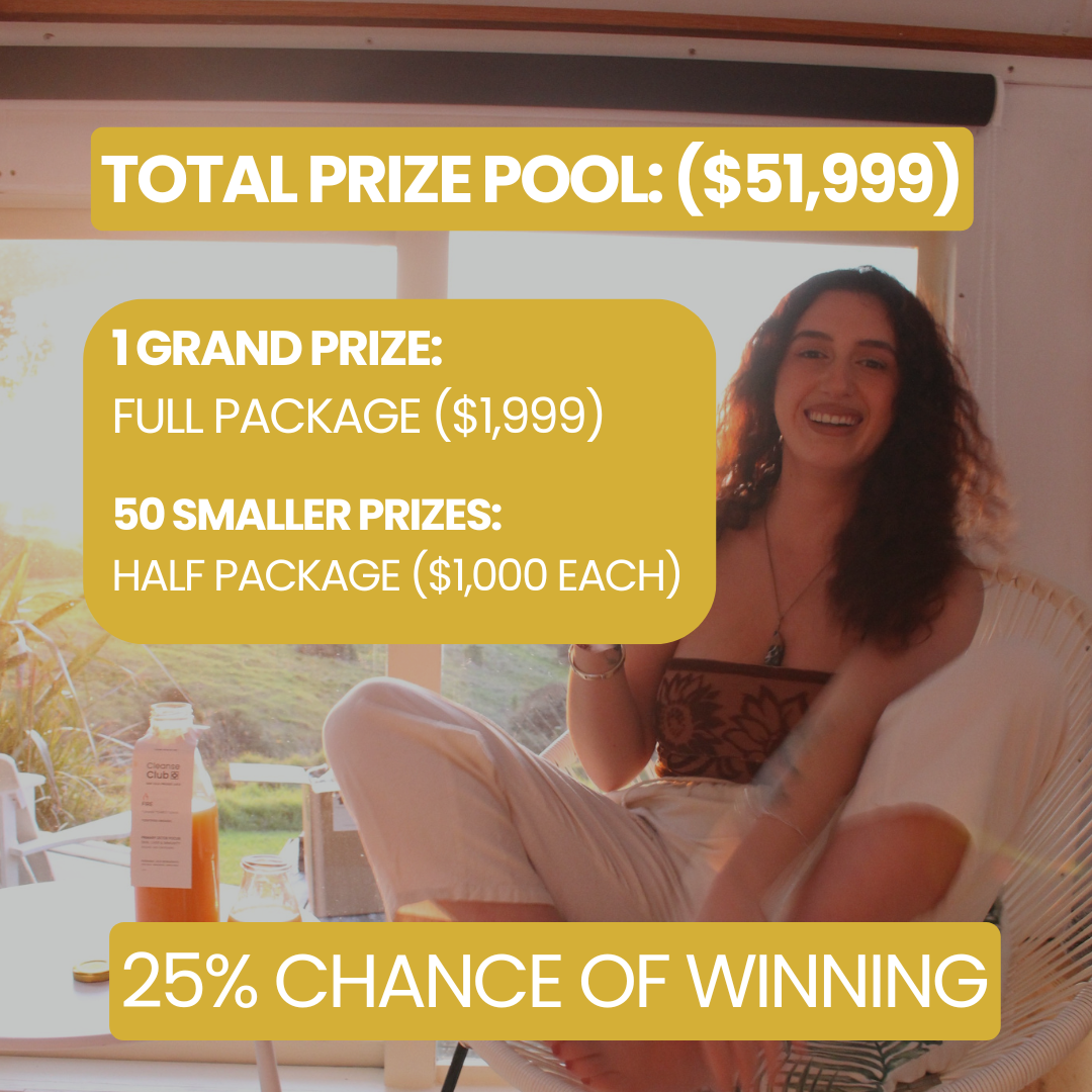 50 Prizes, 1 Grand Prize, Capped at 200 Entries, 25% Chance of Winning!